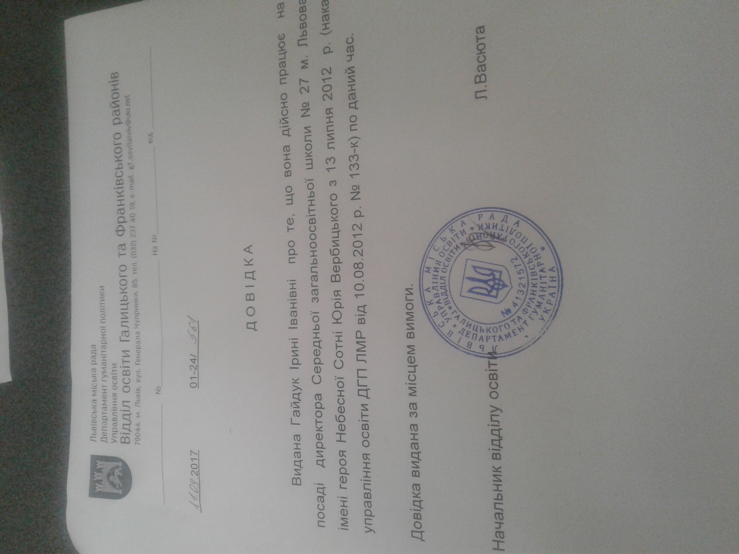 Дані про автора: Ірина Гайдук, паспорт серія КС 614117